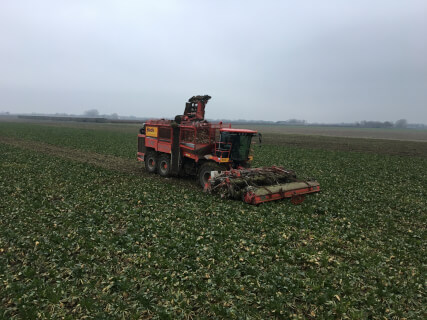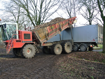 We are harvesting both sugar beets and chicoree with our Holmer T4-40. This machine is equiped with a twelve row header and the Holmer EasyLift system.